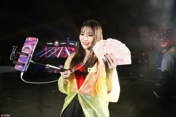 虽然在雨中浑身被淋湿,但她依然在赛场内拿着手机,在近5个多小时的时间内,坚持随时随地进行现场直播,与网友频繁进行互动,视频点击量突破百万,当晚直播收入和赛事补贴拿到了1万多元,让身边朋友羡慕不已。