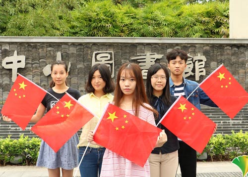 大学生迎国庆与国旗花式合影 致敬祖国67岁生日