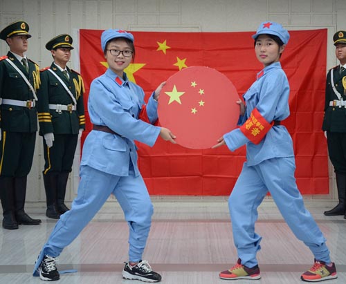 大学生迎国庆与国旗花式合影 致敬祖国67岁生日