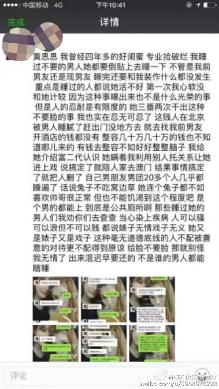 据悉,这是一起涉及到感情纠纷的暴力事件,黄思思被一位女性朋友痛殴,网上流传一组黄思思被殴打时的照片。