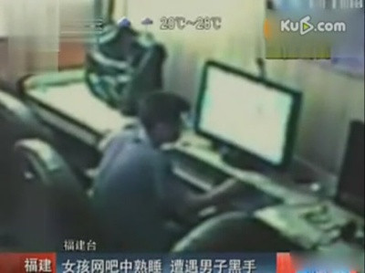 女孩网吧内熟睡 被猥琐男偷扒裤子乱摸