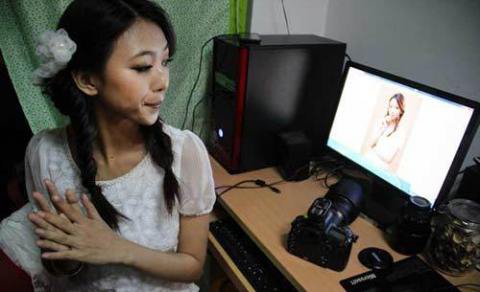 图为广州市,小米坐在一旁望着电脑屏幕上的“成品”。