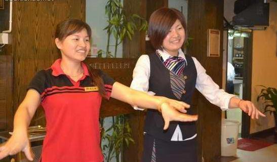 有时在例会上,大家还会跳跳简单的舞蹈。与其说是舞蹈,其实就是活动身体的一种手语操。