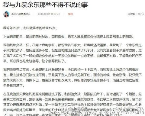 上海第九人民医院一医生利用手术机会性侵女客户并导致毁容