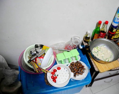 地下室是可以做饭的,但是不能用大功率的电器,否则会跳闸,锅锅碗瓢盆放在整理箱上,或者简单的桌子上,一些最基本的炊具都配齐,这样可以在自己温馨的小屋子做可口饭菜了