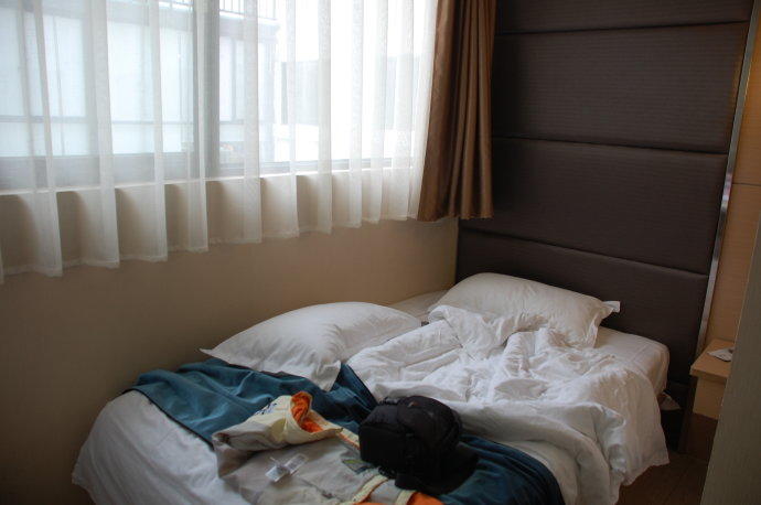 这个酒店这个房间光线比较好,床单也不会很乱,老板说走这对情侣只开了1个小时的房间,不过不到20分钟就出来了,听说家里有事情要离开,所以,建议我入住这间,,这个还不错,最后就等老板整理好就入住。