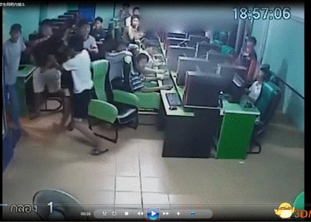 在一旁上网的人也好像意识到情况不对或是看到了外面的情况也躲到后面。
