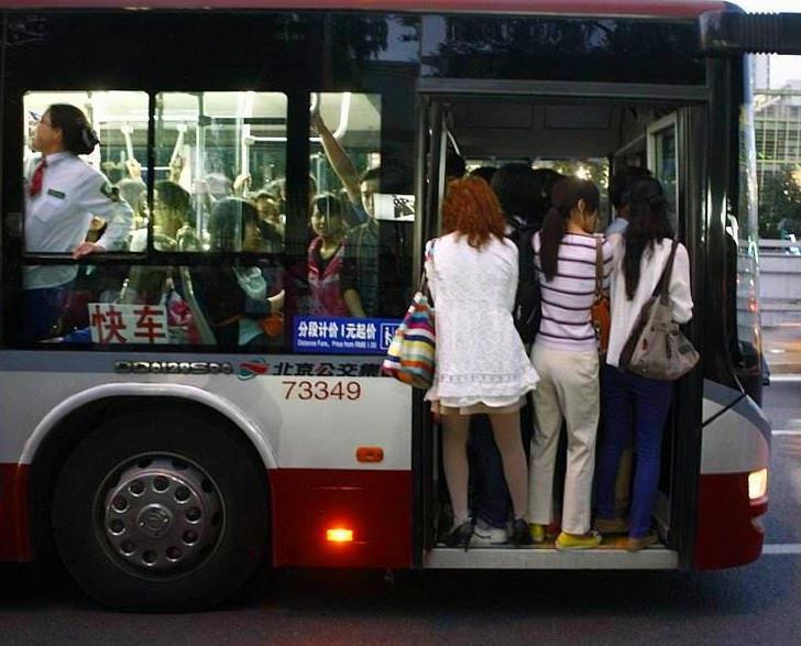 就算勉强挤上了公交车,也会是上边的这种状况,只身一人被几个大老爷们包围着!