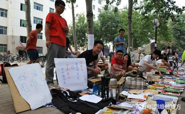 大学里很多人都是外地的,毕业时很多东西都不方便带回家,所以干脆就卖给低年级的,所以就有了这种跳蚤市场。