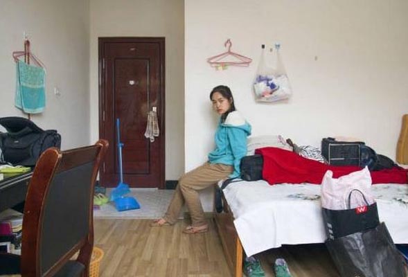 学生小林为了有个好的学习环境,选择了在校外租房。小小的房间里正为考研奋斗。