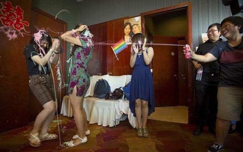 俩美女同性恋大学生刚毕业就上演“新娘娶新娘”女同舌吻