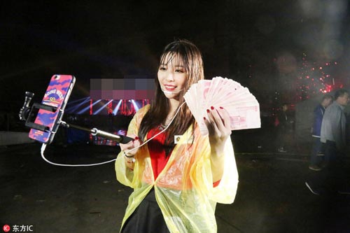 郑州90后美女大学生冒雨直播 一夜狂赚上万元