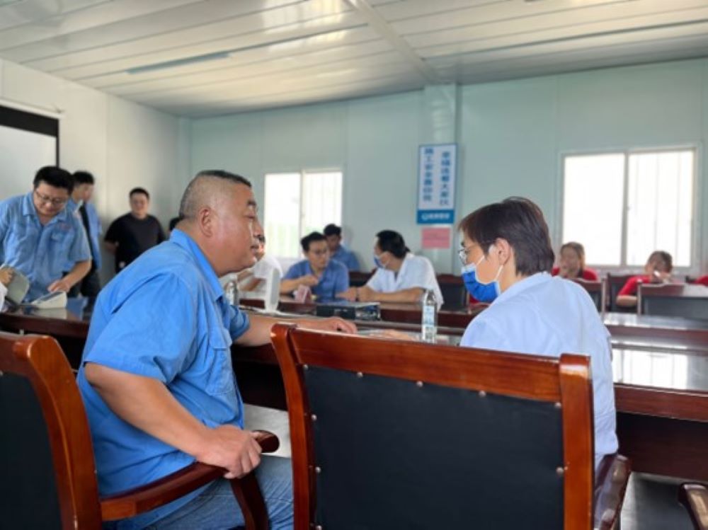 在义诊现场,咨询的建筑工人络绎不绝,问诊、检查、诊断等工作有条不紊。专业医师逐一为建筑工人测量血压、内科与外科以至于骨科问题都有专业医师进行检查。对于每一位来义诊的建筑工人,义诊医生仔细询问其身体状况,用通俗易懂的语言给予耐心细致的解答,提出治疗建议及预防保健方案。