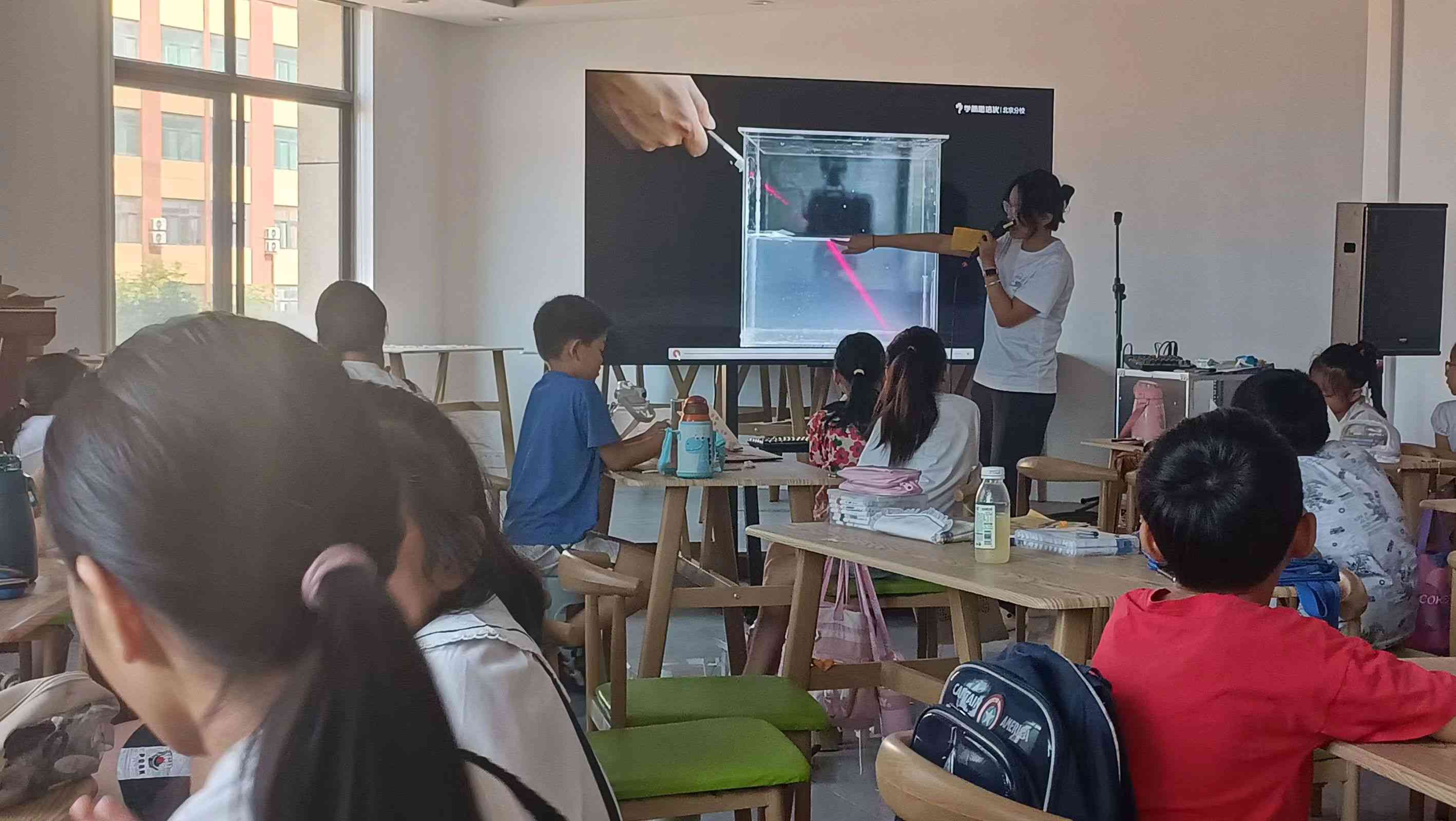 大自然是一本无字的书,丰富多彩的自然物,千变万化的科学现象,是孩子们学习的最好内容。如果没有光,我们的生活将会一片黑暗,为了丰富学生的知识面,开拓学生的视野,支教队队员孔文琪开展一系列关于光的活动,带领大家探索“光的秘密”。本节课老师结合生活中的常见现象,讲述了光的直线传播、光的反射、光的散射等基础光学知识。真理的力量照亮课堂,课上简单的科学实验现象满足了孩子们的好奇心,以好奇心激发孩子们的创造力,让孩子们在快乐中探索与成长。
