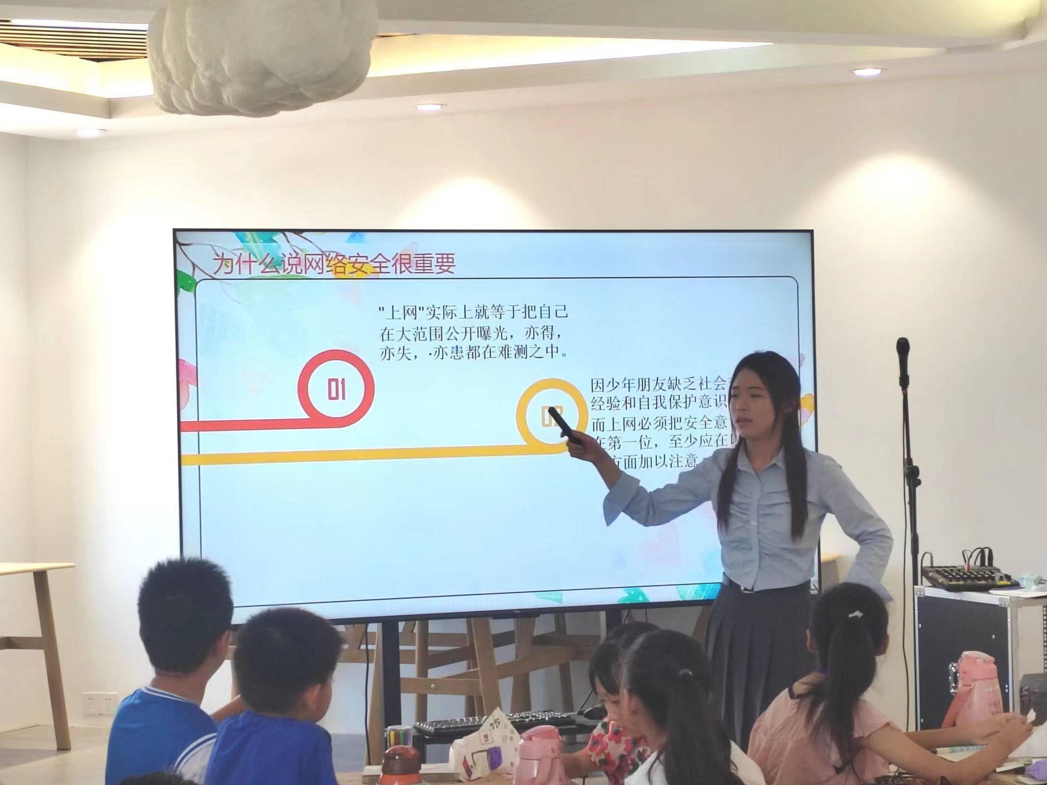 网络空间是亿万民众共同的精神家园,网络大面积普及产生便利的同时,也让学生接触到了短视频、游戏并沉迷于此,网络安全教育刻不容缓。支教队队员王雪通过“寻找手机密码”游戏引入课堂,调查学生刷视频、玩网络游戏的时间安排,课堂教学循序渐进,让学生了解到沉迷手机的危害,如视力下降、成绩下滑等等,并带领学生制作时间规划表,合理安排上网时间。