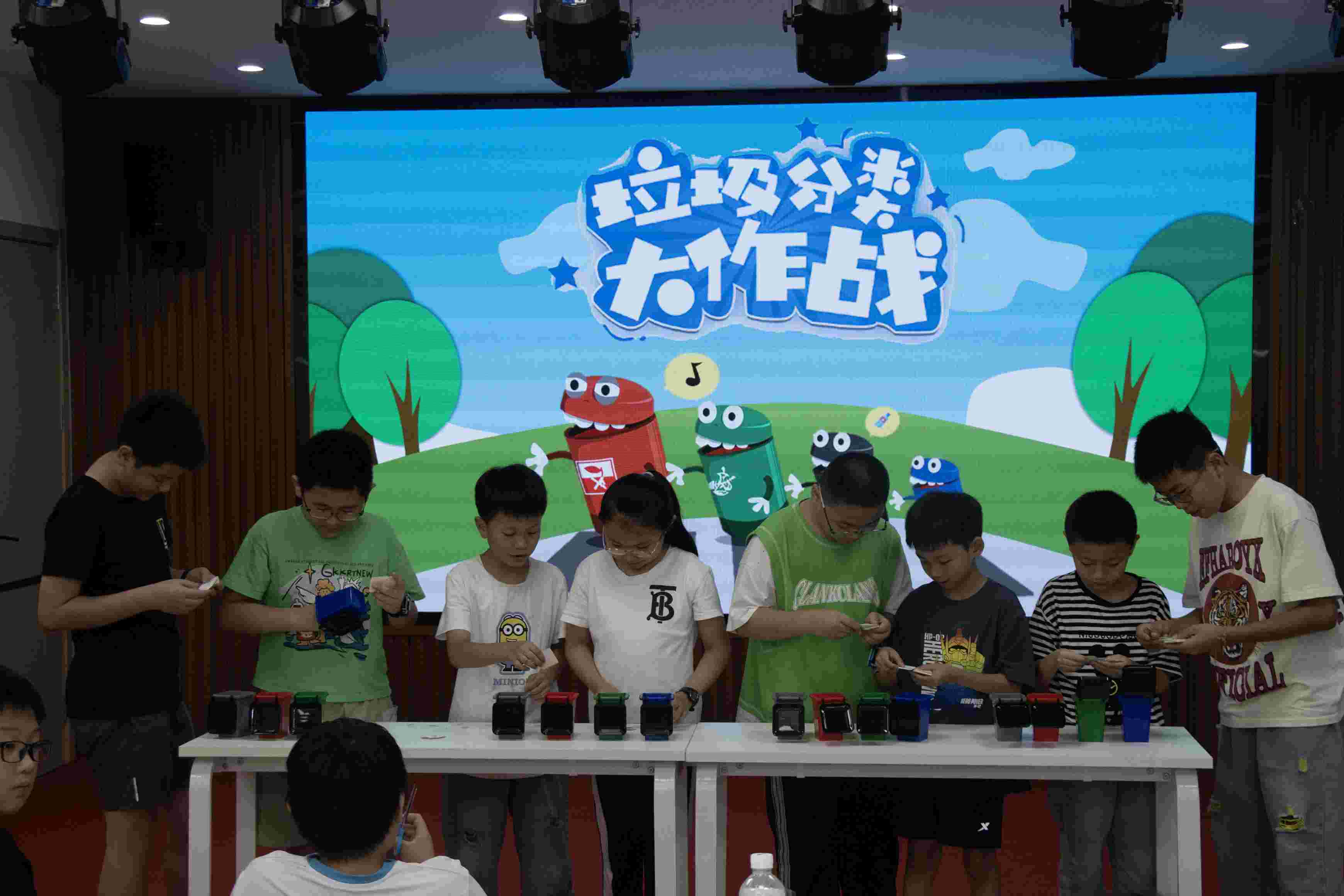 首先进行的是垃圾分类大作战活动。志愿者们在视频短片的辅佐下为小朋友们介绍了垃圾分类的必要性以及不进行垃圾分类所带来的麻烦与危害,还耐心地为他们讲述了垃圾分类的种类并教会了他们如何判断,小朋友们都十分认真地学习着。而后为了检验他们的学习成果并增添活动的趣味性,志愿者给小朋友们分组进入提问环节让他们抢答,一个个问题的对答如流表现出了小朋友们已经将垃圾分类的意识牢牢记在了心里。
