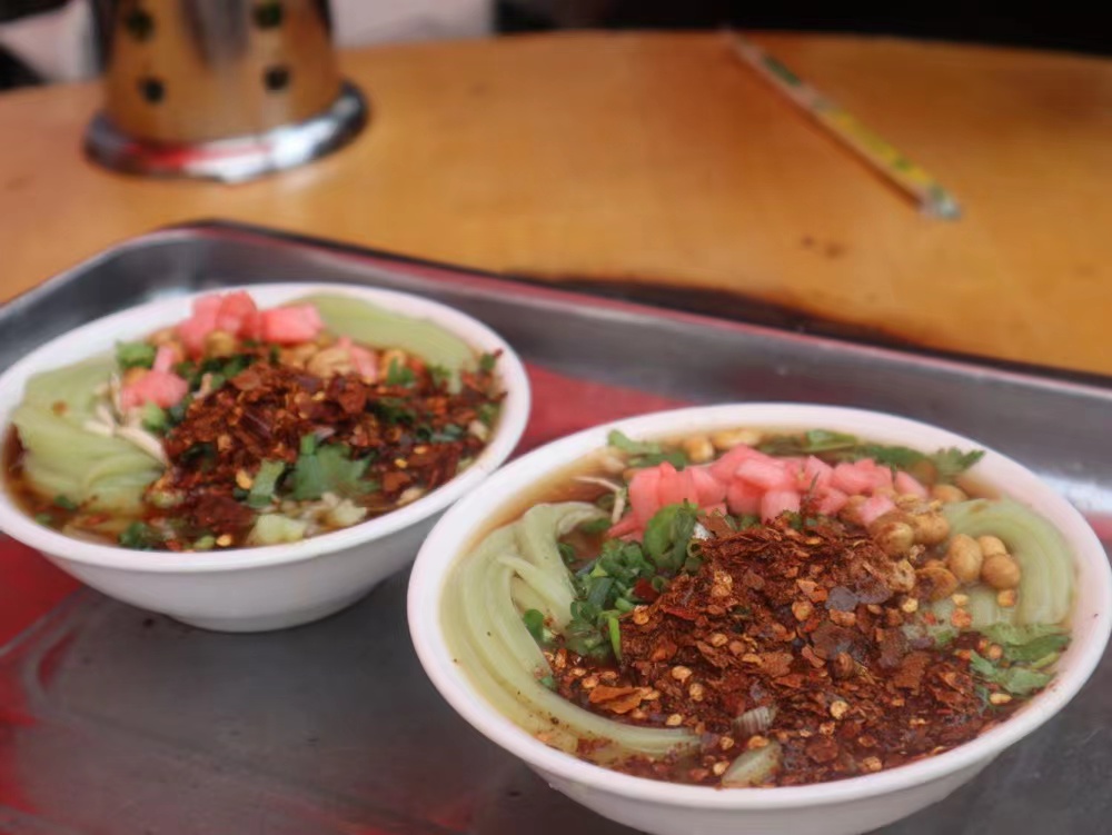 团队更是在有幸在学习中品尝感悟,贵州的羊肉粉选取当地的羊,味道鲜美,羊汤则是长时间熬煮,味道醇厚,再加上弹牙的米粉和羊肉片,一碗经过辣椒点缀后的羊肉粉吃出了满足与幸福。贵州的菜肴中,常见的配料包括酸笋、豆腐干、黄豆芽等,这些都赋予了贵州菜独特的口感和风味。