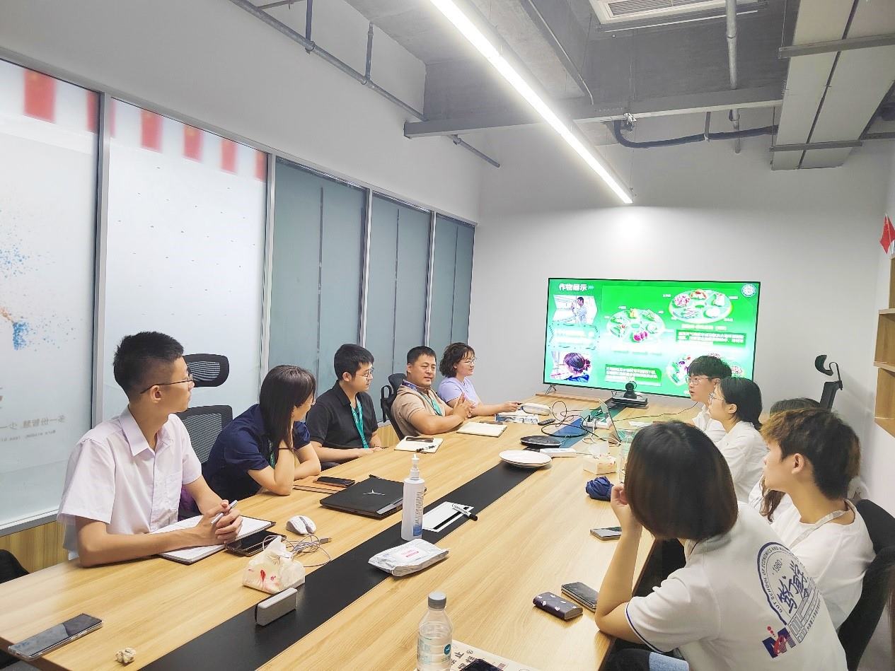 在信芯微阎总与工作人员玛丽的组织下,实践团队与海信冰箱王总等人进行深度交流。队长张昊男向王总等人介绍智能种植柜项目。王总表示对该项目很感兴趣,智能种植柜未来有很大的发展市场和发展前景。同时,双方也深入探讨以算法写入芯片,让智能种植柜更智能等问题,王总对未来智能种植柜的发展提出了多条发展建议。