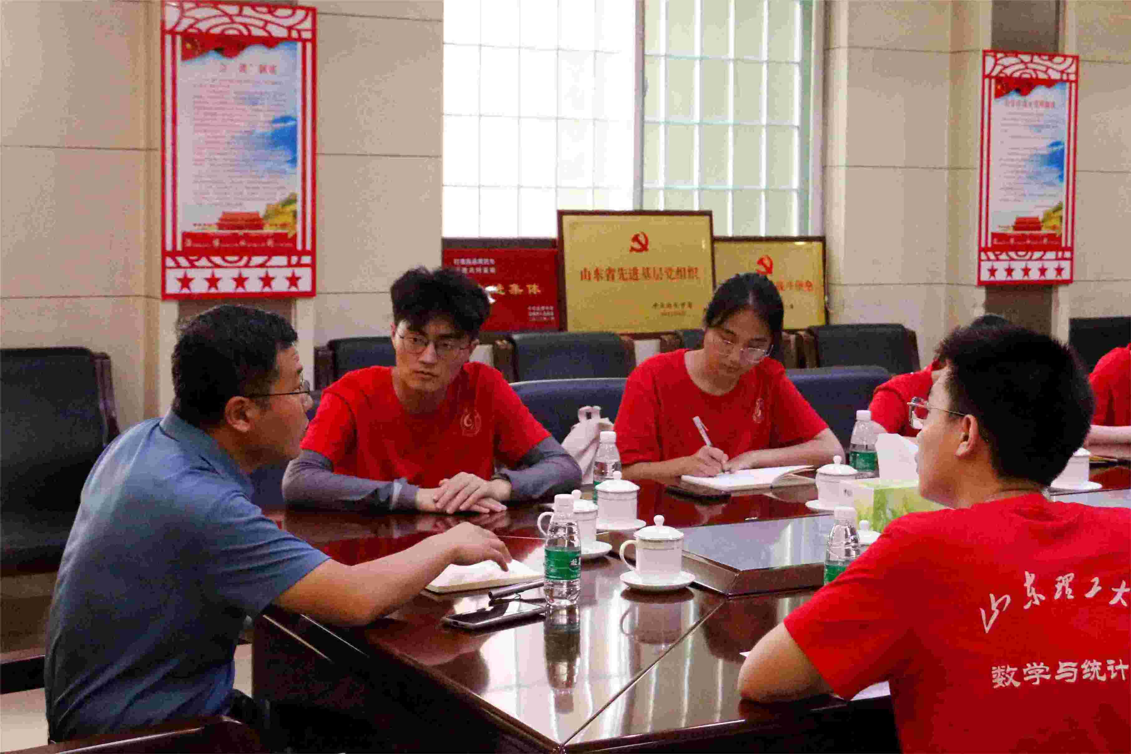 图为实践团成员与水利局工作人员讨论淄博水利建设 王圣智 供图
