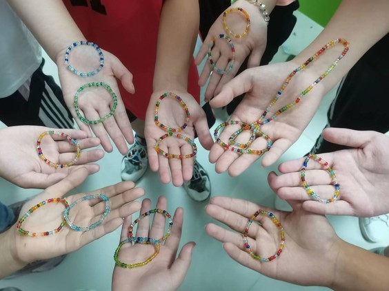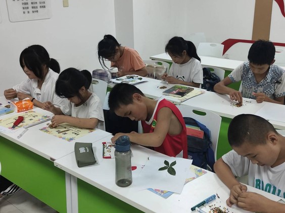 下午,志愿者带孩子们做了树叶贴画和串珠。给孩子们上树叶贴画课的志愿者姐姐表示,很多孩子对色彩的搭配很有天赋,并富有创造力,他们并不拘泥于课上所教的做法,而是发挥想象做出了椰子树、小蝴蝶等好看的贴画。课后志愿者们给孩子发了“艺术之星”的奖状作为鼓励;串珠课上,孩子们兴趣高昂,把串珠做成了手链,项链,手机挂件等等作为送给爸爸妈妈的礼物,孩子们的感恩之心令人动容。