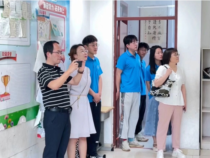 在这一天的行程中,马克思主义学院的院长和领导们还参观了初一初二班的国防强军思政课,四五年级的语文课,二三年级的数学课,巡查了各班的教学设计情况,并与学生们进行了互动和交流。通过这次实地考察,他们不仅对教学工作有了更深入的了解,还为学生们以及“筑梦启航”实践团的成员们提供了宝贵的学习机会和指导。