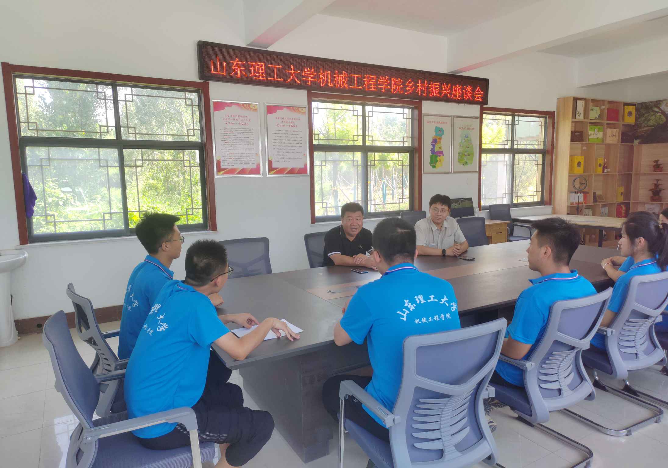 图为团队成员与后屯村村支书座谈交流实践团在本次实践中收获颇丰。通过深入基层,深入了解家乡产业发展现状,为桑椹旅游产业保护和利用提供有力支持。此外,村委会给予了实践团全方位的保障,包括提供会谈场地、指导与村民交流等。实践团将深入调研对古桑树的保护,积极探索桑椹旅游产业的优化与升级之路,在保护桑树不受破坏,自然环境保持原生态的前提下,积极宣传发展旅游产业,为家乡的繁荣以及家乡环境的保护贡献一份力量。