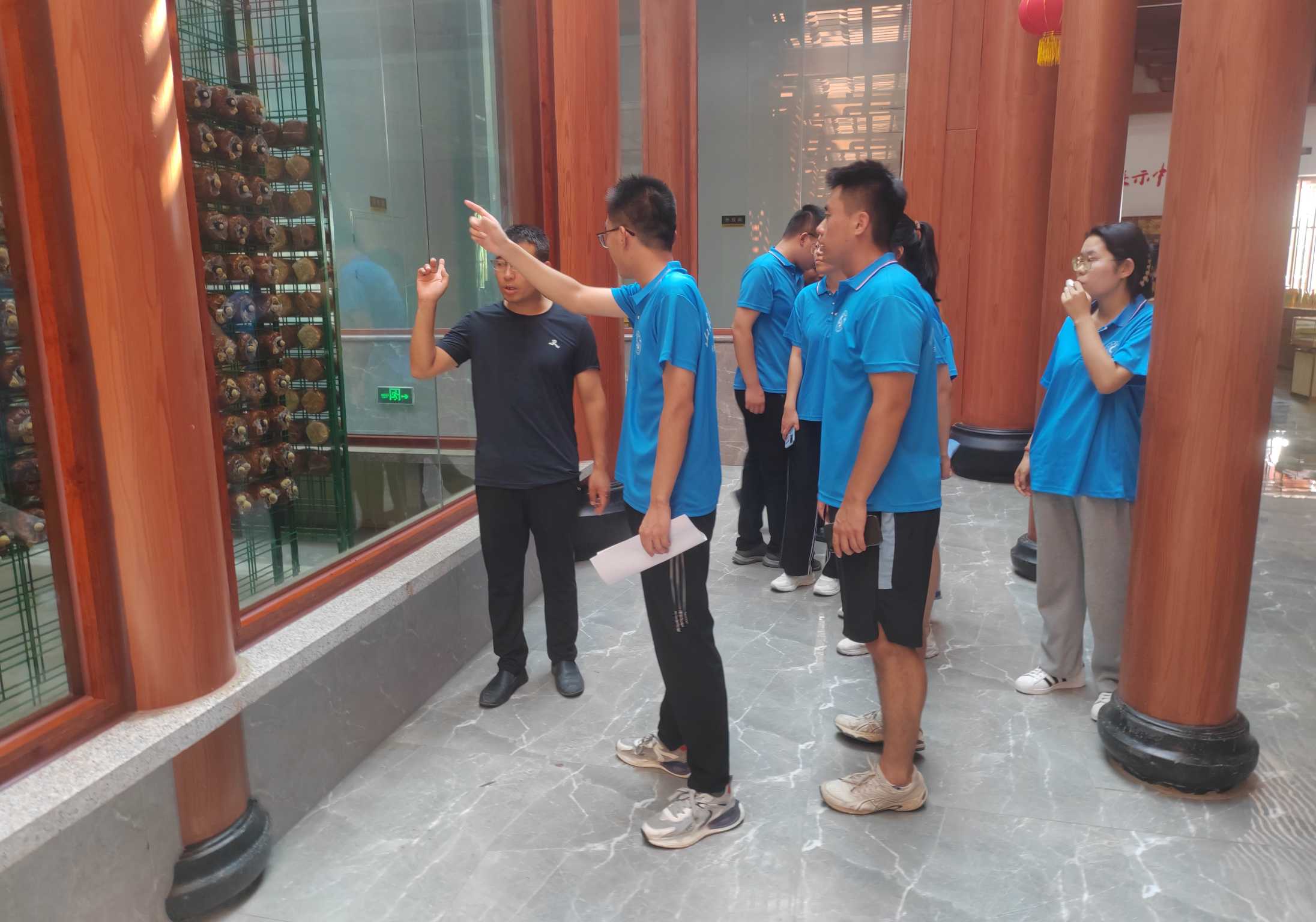 图为团队成员参观桑椹产品