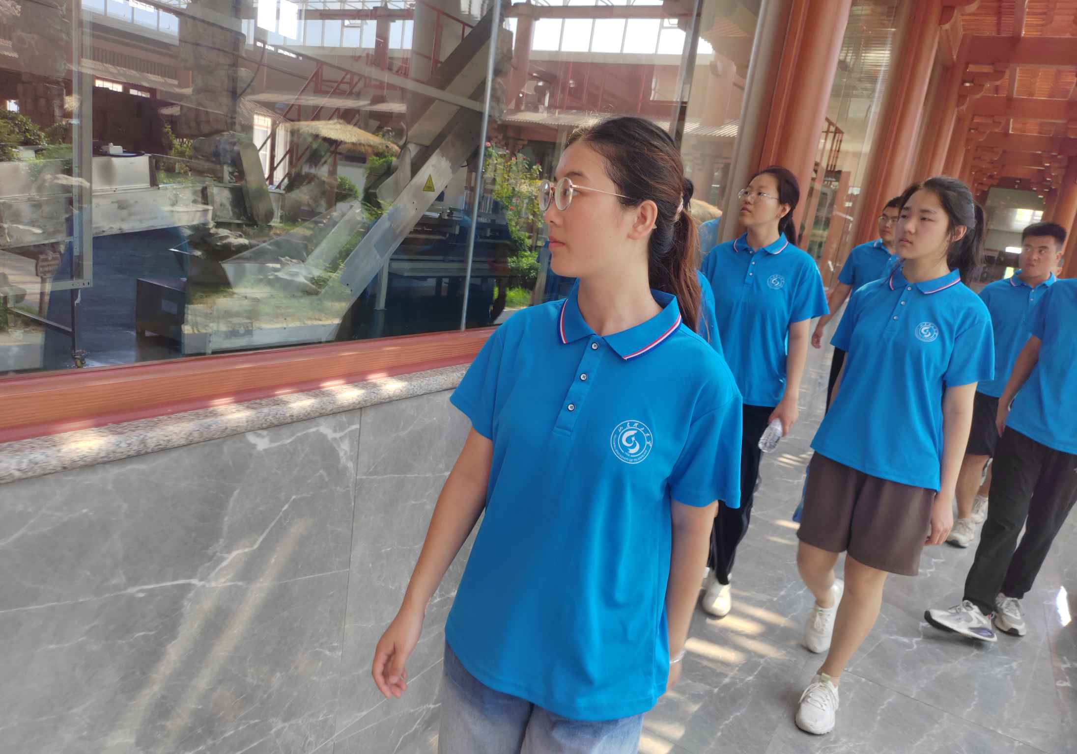 图为团队成员参观桑产品生产车间 在调研中,实践团成员与该研究院的专家进行了深入交流。专家们向实践团成员介绍了古桑产业的发展历程、现状和未来的发展趋势,并就古桑产业存在的问题和未来的发展方向进行了深入探讨。实践团成员也向专家提出了自己在调研中的疑问,得到了专家的详细解答。