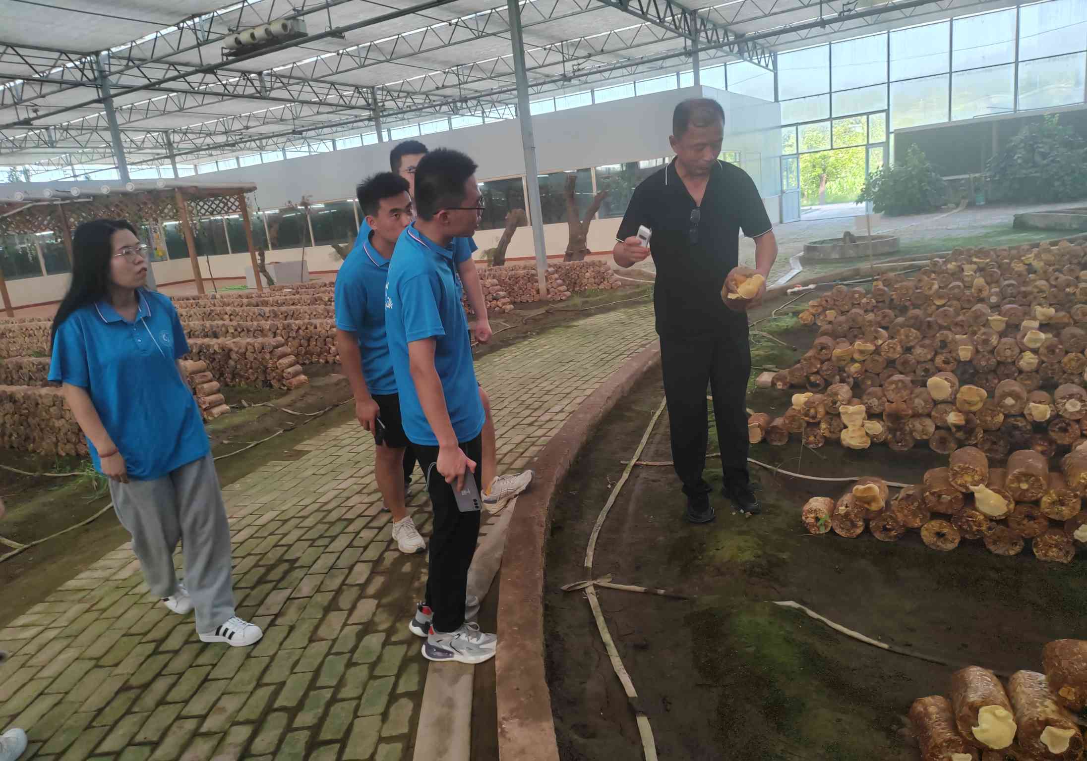 随后,工作人员带领实践团走进了桑黄基地,向实践团展示了桑黄的生长环境以及贮藏条件。桑黄生长环境虽需要高温高湿,但不能直接浇水,这也是自然环境下桑黄不易生长的原因之一。