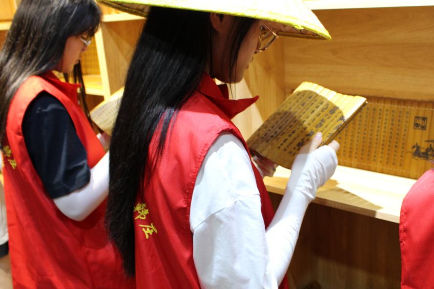 六名实践团成员一同阅读书架上排列的“弟子规”“三字经”等竹简书,鉴往知来,寻根中华上下五千年。文物是历史的见证,珍贵的馆藏品、史料让实践团成员再一次回望起中华历史长河中的一个个瞬间、一幕幕场景。实践团成员浏览并学习了虎头鞋的由来和一些民用器具之后,均深感古人的智慧之卓越、中华文明之耀眼。