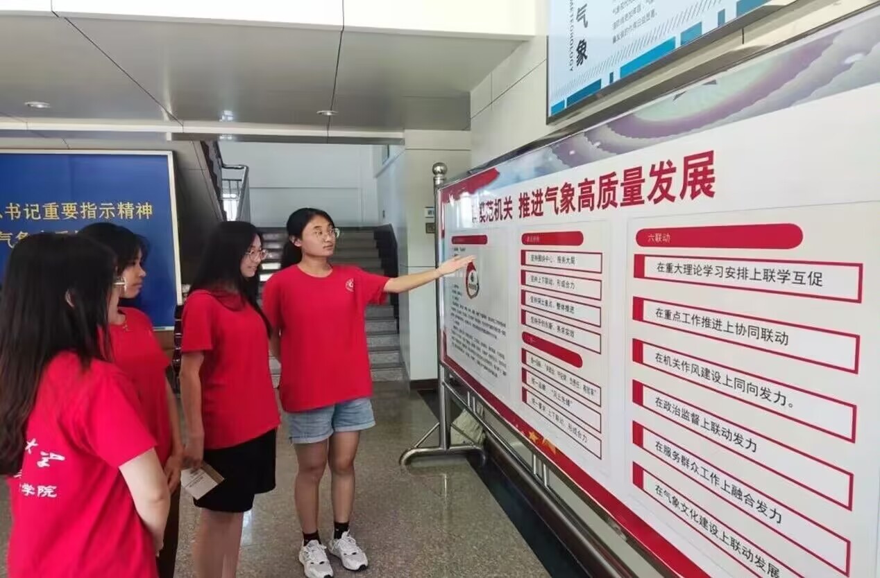 图为实践团成员认真听气象专家讲解。 王圣智 供图