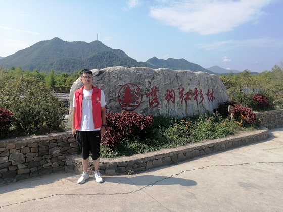 图为实践队员在皖南川藏线落羽红杉林景区调研