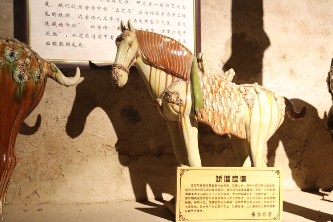 图为张毅鹏传承人带领参观和讲解唐三彩窑。