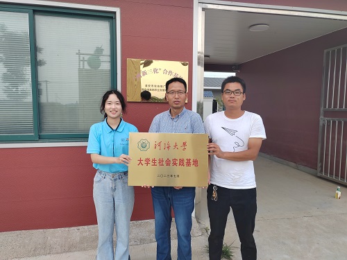 8月5日,实践团成员前往淮阴农业发展有限公司进行参观学习。实践团跟随公司负责人李经理参观了解了公司经营概况,此外,李经理向同学们简单介绍了淮阴农业今年来的现代化发展:为响应乡村振兴政策,大力发展节水绿色新农业、推广稻麦新技术、新模式、培训培育新型职业农民等。通过交流,实践团得知负责人也曾就读于河海大学,互相交流了在河海的校园生活,负责人对于大学生能够走到基层,真正到农村进行社会实践,为农业发展贡献青春力量表示非常欣慰,并期待后续能与实践团持续交流合作。同时,实践团也在淮安市淮阴农业发展有限公司进行大学生社会实践基地挂牌,以期和校友继续合作,为节水降碳农业发展提供科学建议。