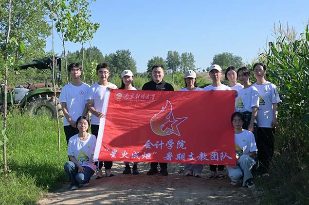 爱开大学生网六安8月28日电(通讯员 黄轲岩)习近平总书记出席全国劳动模范和先进工作者表彰大会时表示,“劳动是一切幸福的源泉。”为深入学习贯彻习近平新时代中国特色社会主义思想中有关“劳动教育”的重要论述,在完成日常支教工作后,会计学院“星火成炬”暑期支教团队队员主动与支教学校周边农户取得联系,开展助农活动,投身于劳动实践。7月29日,在南京财经大学会计学院团委书记俞伟老师的带领下,团队共同前往安徽省六安市霍邱县冯瓴镇马湾村开展劳动实践。通过听取农户讲解、参观学习、除草和采摘等一系列实践活动,团队队员亲历劳动过程,共采劳动硕果,将劳动课程搬到了田间大地上。