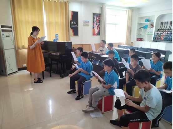 图为袁晨曦教唱《童年》,带领同学们感受音乐的感染力和魅力,培养孩子们的音乐素养。通讯员 曹晓洋 摄
