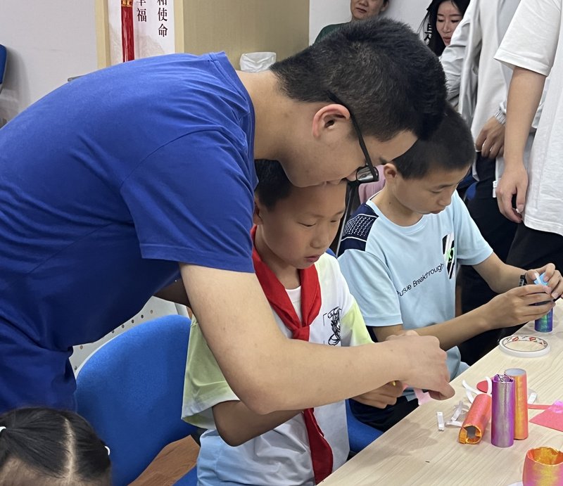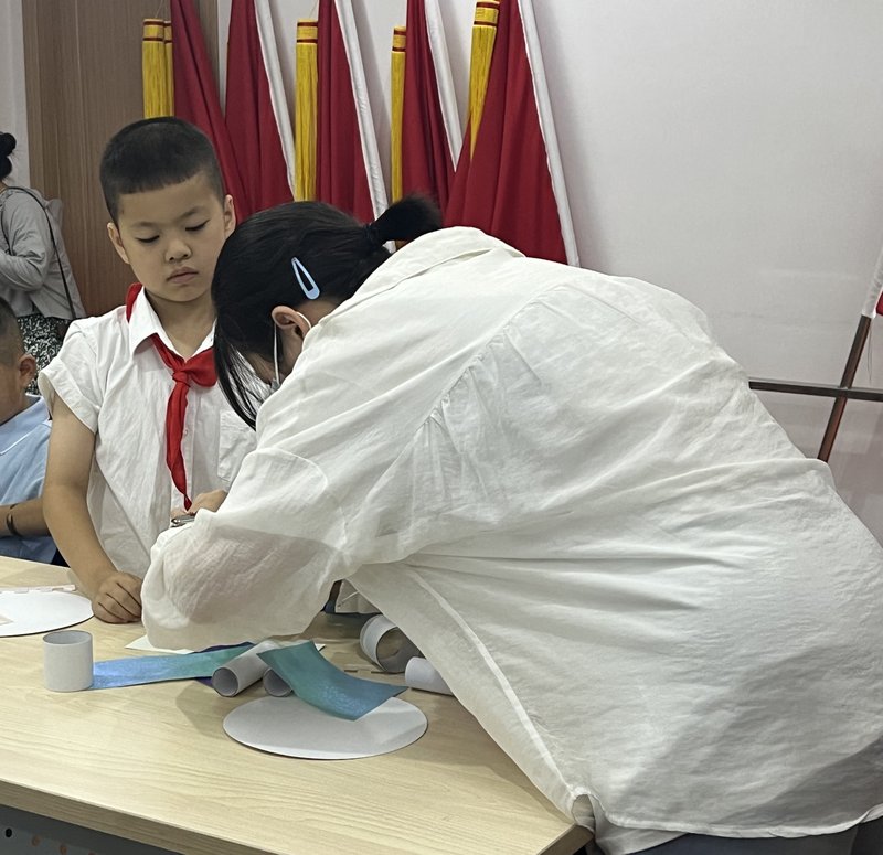 通过垃圾分类,大家还了解到了变废为宝的知识,比如快递纸壳可以做成收纳盒,所以为了提高小朋友对垃圾分类回收的积极性,我们邀请到专业老师和小朋友们一起利用废旧的纸筒纸张制作亚运城堡。为了让小朋友们更好地参与到活动中来,实践团队成员作为辅导员将全程陪伴小朋友们一起学习、探索和创作,小朋友们虽然不太熟练,但是每个人都耐心地一步步完成自己的作品,最后大家手上的废品变成了一个又一个精美的城堡。