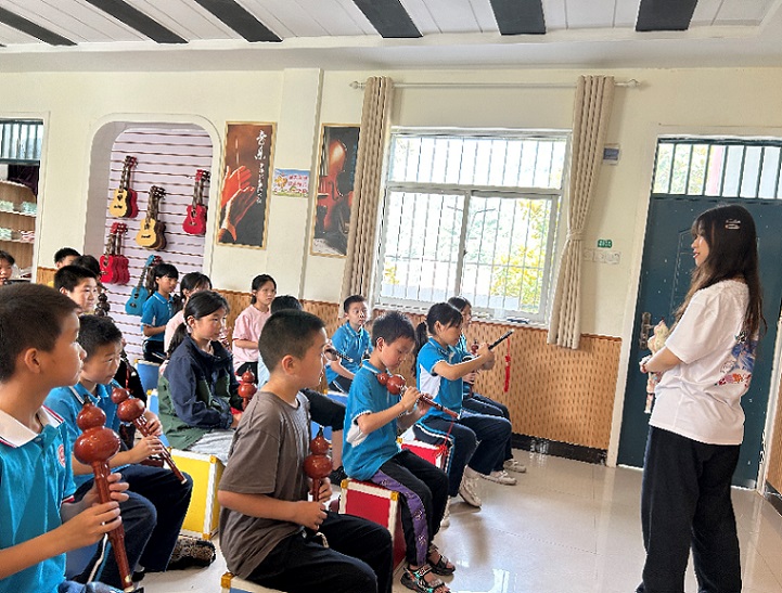 图为刘老师教小朋友们吹葫芦丝。(廖垣樯 摄)