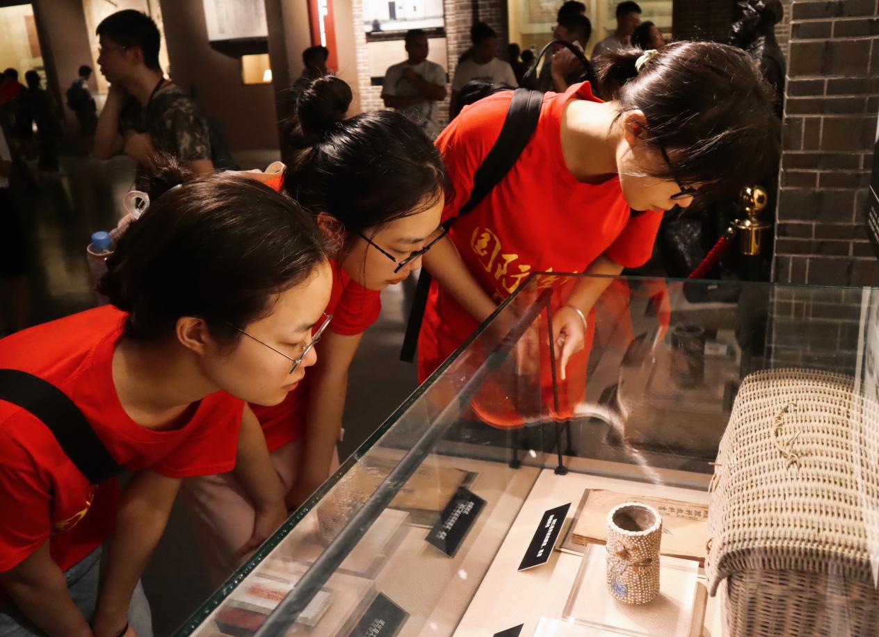 图为团队成员参观为建立红色政权而牺牲的刘仁堪烈士所使用过的藤篮、笔筒和教科书
