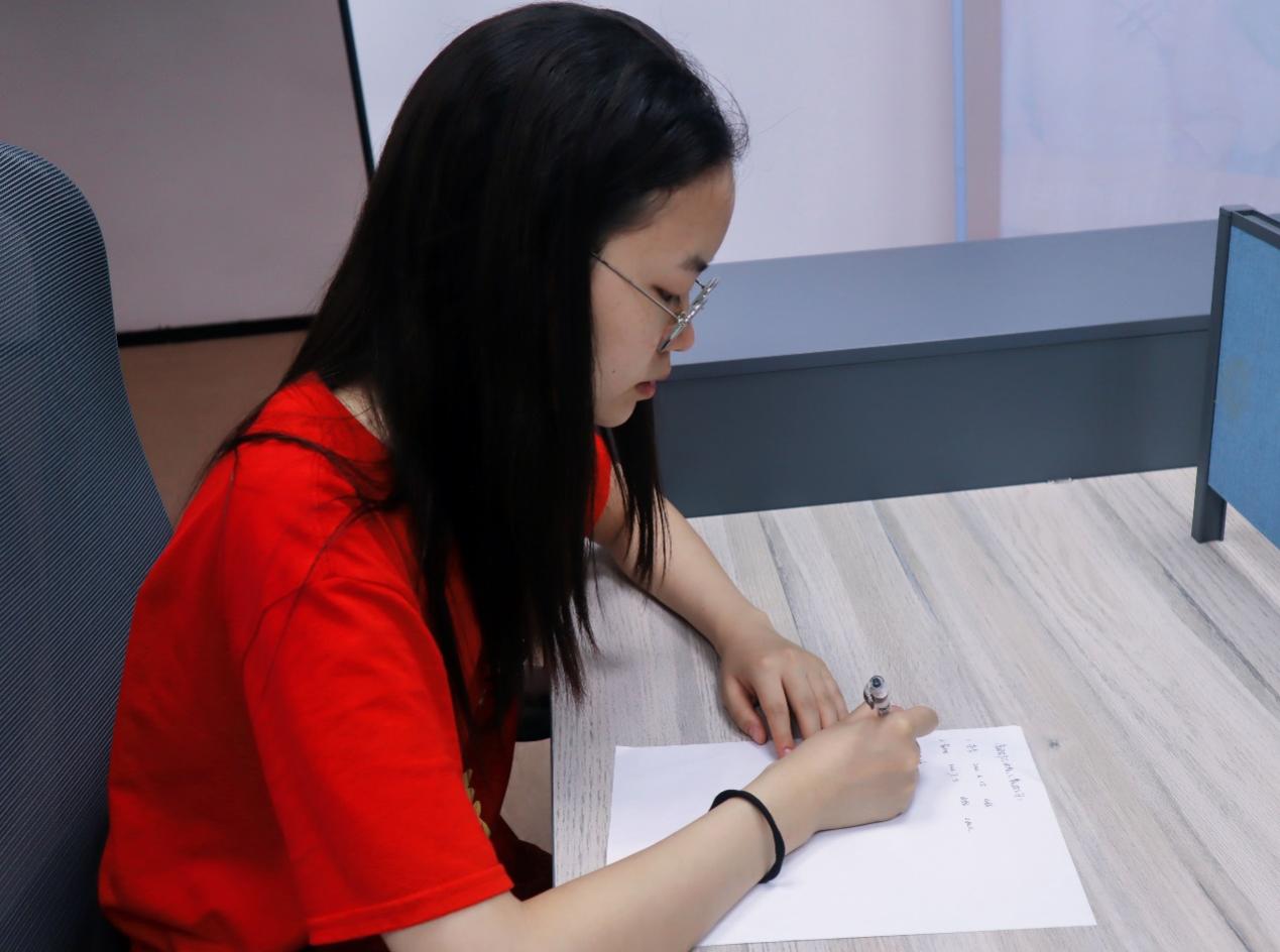 图为团队成员在井冈山直播经济总部大楼的售后服务部进行创新点记录
