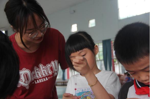 (图二:真会老师正在给同学们张贴剪纸)