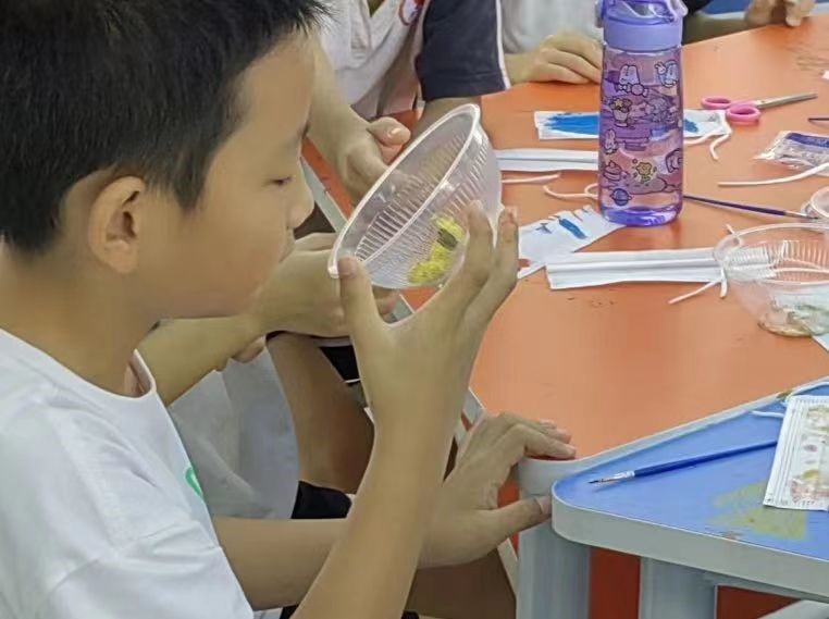 在最后,小朋友们也都成功破解了谜题,回到教室中,在小七老师和助教们的指引下,将先前画好的口罩继续制作成了香囊袋的样子,并各自选择了喜欢的香料填充香囊,得到了独属于自己的口罩香囊。