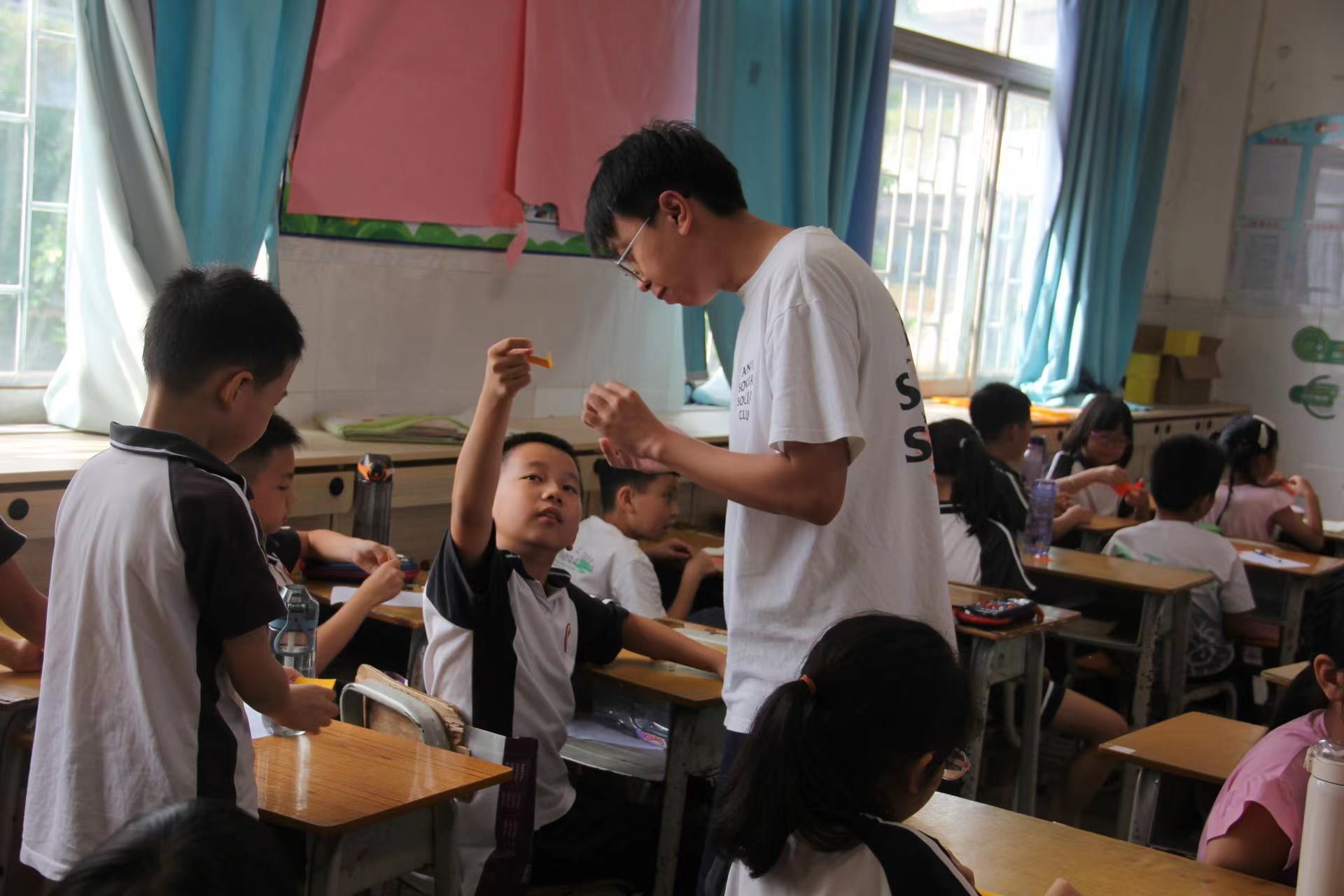(图二小黑老师与小朋友一起进行实验)