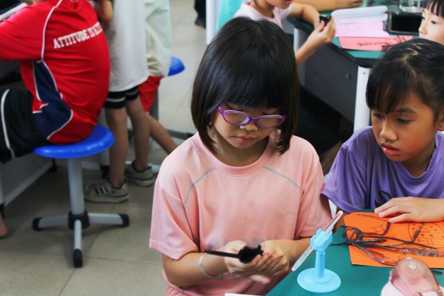 接下来映吟老师带着小朋友们进入课堂第二部分——影响摩擦起电的因素。映吟老师通过提问相关问题,加深小朋友们对影响摩擦起电因素的理解。在探究完影响摩擦起电的因素以后,映吟老师带领小朋友们进入课堂的第三部分——静电的性质。映吟老师让小朋友们将一小块纸撕成许多的小纸屑,再拿起PVC管,摩擦毛皮,再用PVC管靠近小纸屑。映吟老师让小朋友们自己动手完成这个小实验,学习到了静电的性质。