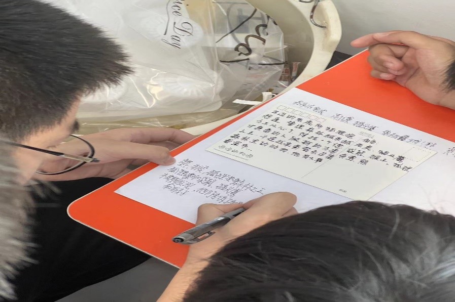 随后,小朋友们开始了初步的分工和构思,在构思的过程中,一些担任导演的小朋友还在小蔡老师下发的纸上写下了剧本,并且指导组内的成员对舞台剧进行排练。小朋友们在合作的过程中不仅体会到了团队合作精神还尝试了演出一个小小的剧场,锻炼了联想创新的能力以及上台表演的能力。