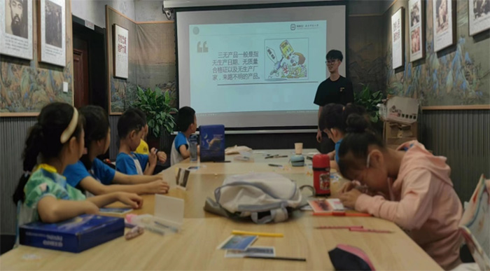 第四次团队来到了南京市规划展览馆,这是规模最大也是最正式的一次宣讲,面对台下一百多位小朋友,团队中的宣讲成员郑翼在台上也是略显紧张。这一批的小朋友拥有最多的食品相关知识积累,并且经常关注食品相关的新闻。在宣讲过程中有小朋友提出了当下最热门的,有关代糖安全性的讨论,我们也对食品包装安全性的问题进行了热烈的讨论,在一次次提问与解答中欢快地度过了一个多小时的宣讲时间。