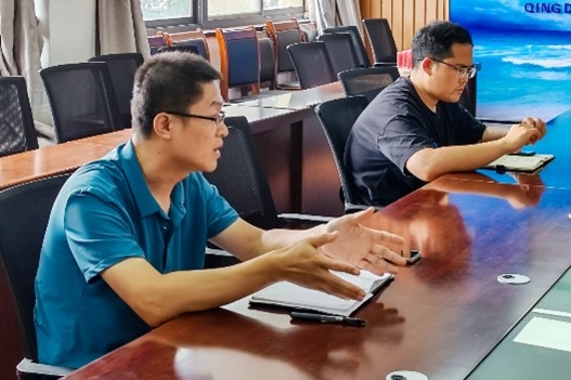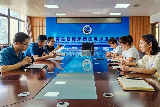 图为青岛市西海岸新区海洋发展局工作人员向实践队成员介绍部门相关政策以及渔业未来规划,强调科研保护,资源创新等重要举措。 杨丽婷 摄