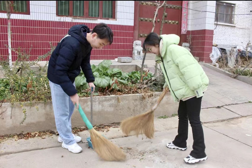 服务队清扫村内街道