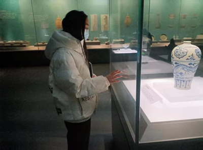 实践队队员重点参观了“古船遗珍”展馆。2010年9月17日,菏泽市区发现一艘古代木质沉船,经专家认定为元代漕船。随船出土文物包括三件元代青花瓷器,虽尘封多年仍绚丽多姿。件件文物诉说着繁荣、战乱和流离的历史过往,展示了泱泱大国风范!出土文物展现了宋元时期菏泽地区的河流遍布,水运便利。