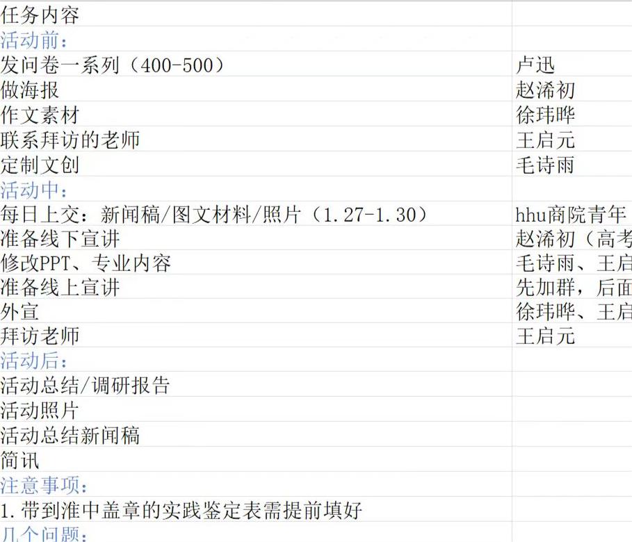 会议有三个议程项目。首先,经队长提出、队员讨论,本次宣讲活动计划以线上线下结合的方式进行。线上宣讲活动面向广大高中生及高中生家长群体,拟通过三次线上会议,讲河海故事,解求学疑难。线下宣讲分为入班宣讲和回访老师两部分。走进淮中,面对面分享认识与感悟;拜访恩师,心对心感念烛光与桃李。